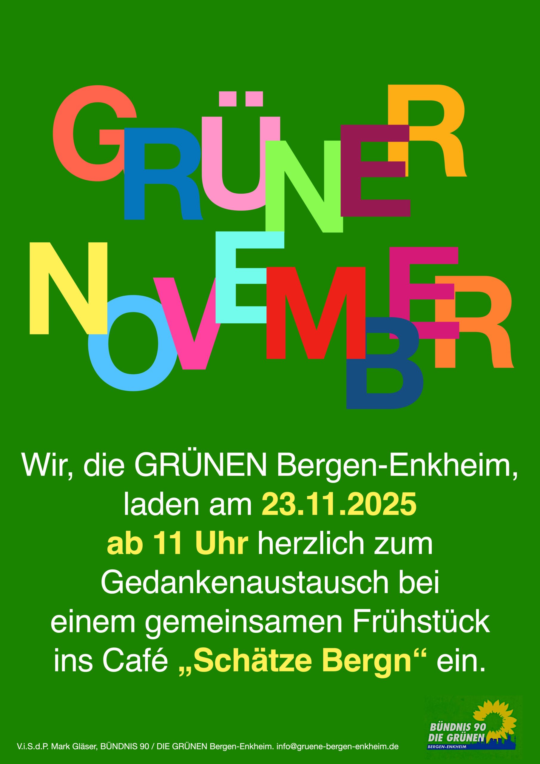 Wir GRÜNE stehen traditionell für Bürger*innenrechte, Umweltschutz, Antirassismus und Gleichstellung sowie Teilhabe aller an der Gesellschaft. In Bergen-Enkheim setzen wir uns dafür ein, dass unser Stadtteil als Ort der Vielfalt erhalten und weiterentwickelt wird. Menschen jeden Alters und aller Abstammungen sollen hier die Möglichkeit haben, ihre individuellen Lebensentwürfe selbstbestimmt zu verwirklichen. Wir werden unsere Kontakte in die GRÜNE Römerfraktion, zum Magistrat, der Stadtverwaltung und den Ämtern nutzen, um Bergen-Enkheimer Interessen zu vertreten.